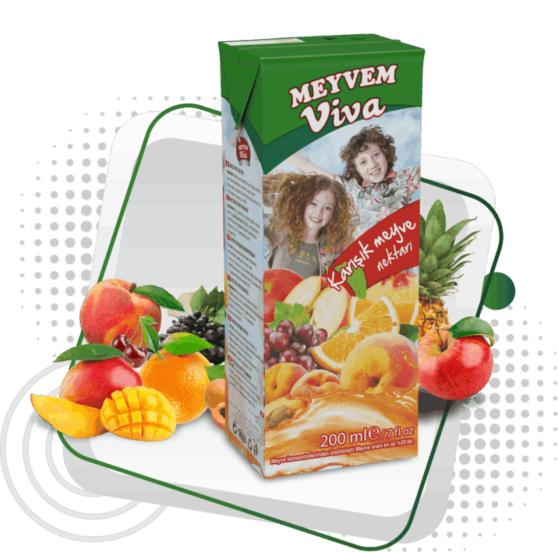 Consuming fruit juice helps you regain the water and energy your body has lost during the day. Supports your health with vitamins, minerals and antioxidants. From this point, we have produced MEYVEM Nectar Juice. Carefully selected, high-vitamin fruits without disturbing the content, we processed without using preservatives and colorants, boxed and brought to your homes to consume with peace of mind. Do yourself a great favor today and see the natural, unadulterated content of MEYVEM, discover the full taste of the fruit you will enjoy in every sip. Cheerio!